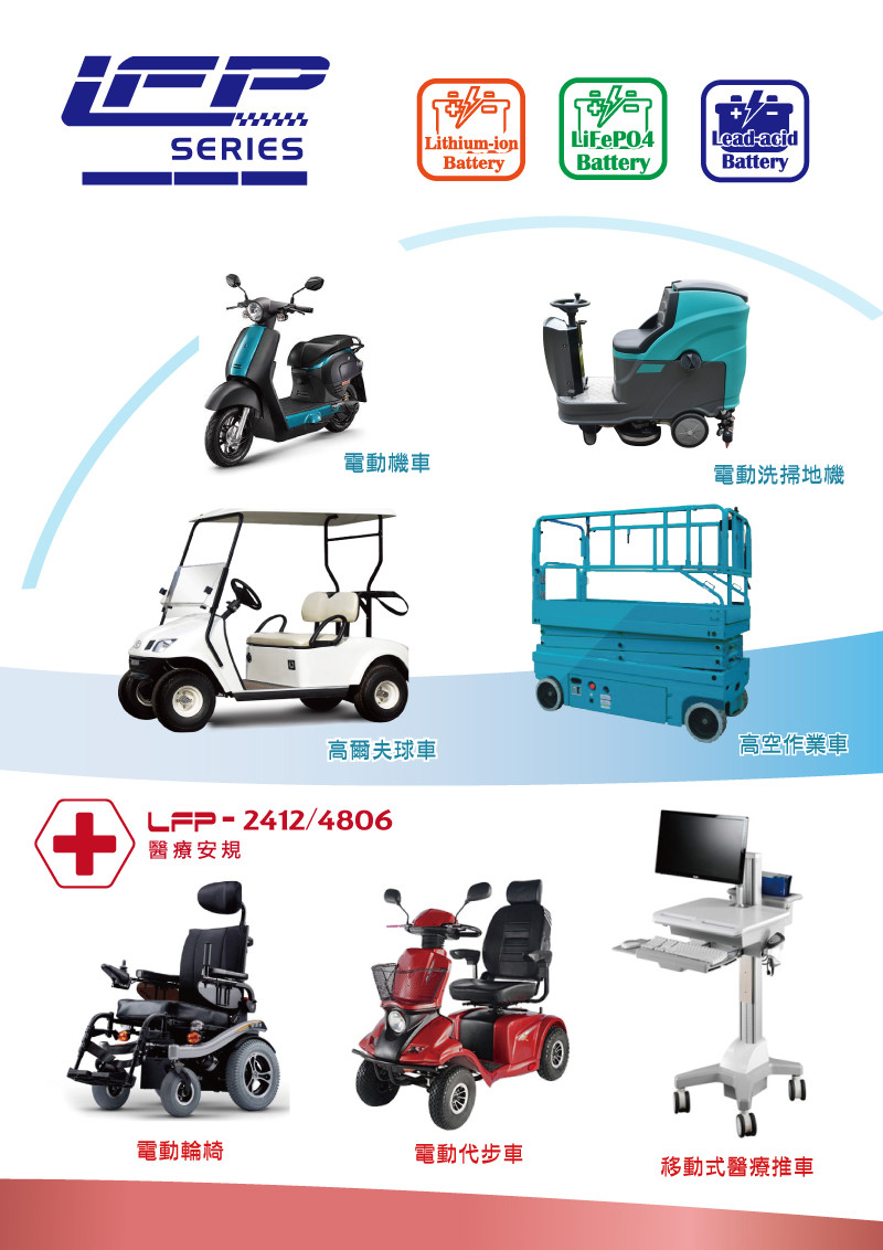 ●適用車種:電動機車/電動洗掃地機/高爾夫球車 / 高空作業車