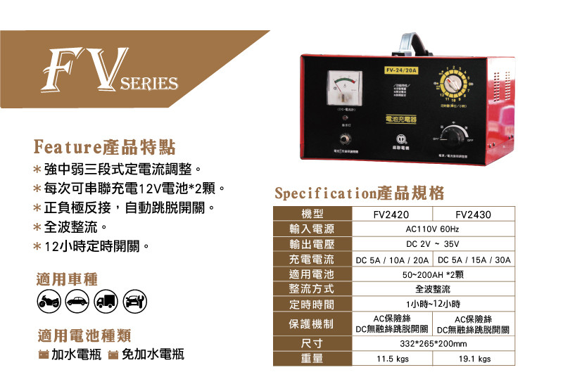●適用電池種類:加水電瓶/免加水電瓶