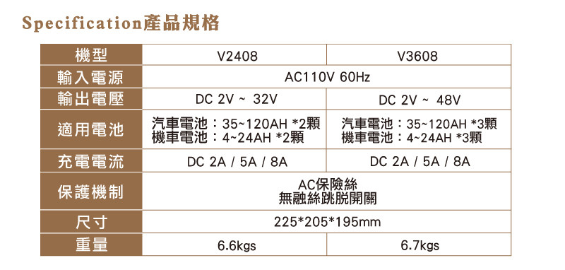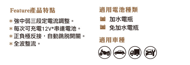 ●適用電池種類:加水電瓶/免加水電瓶